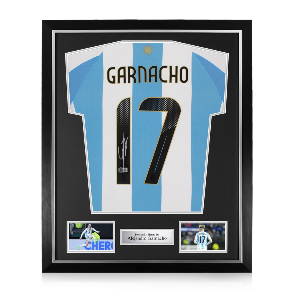 Alejandro Garnacho Signed Framed Argentina Home Shirt w/ BAS Beckett Authentication