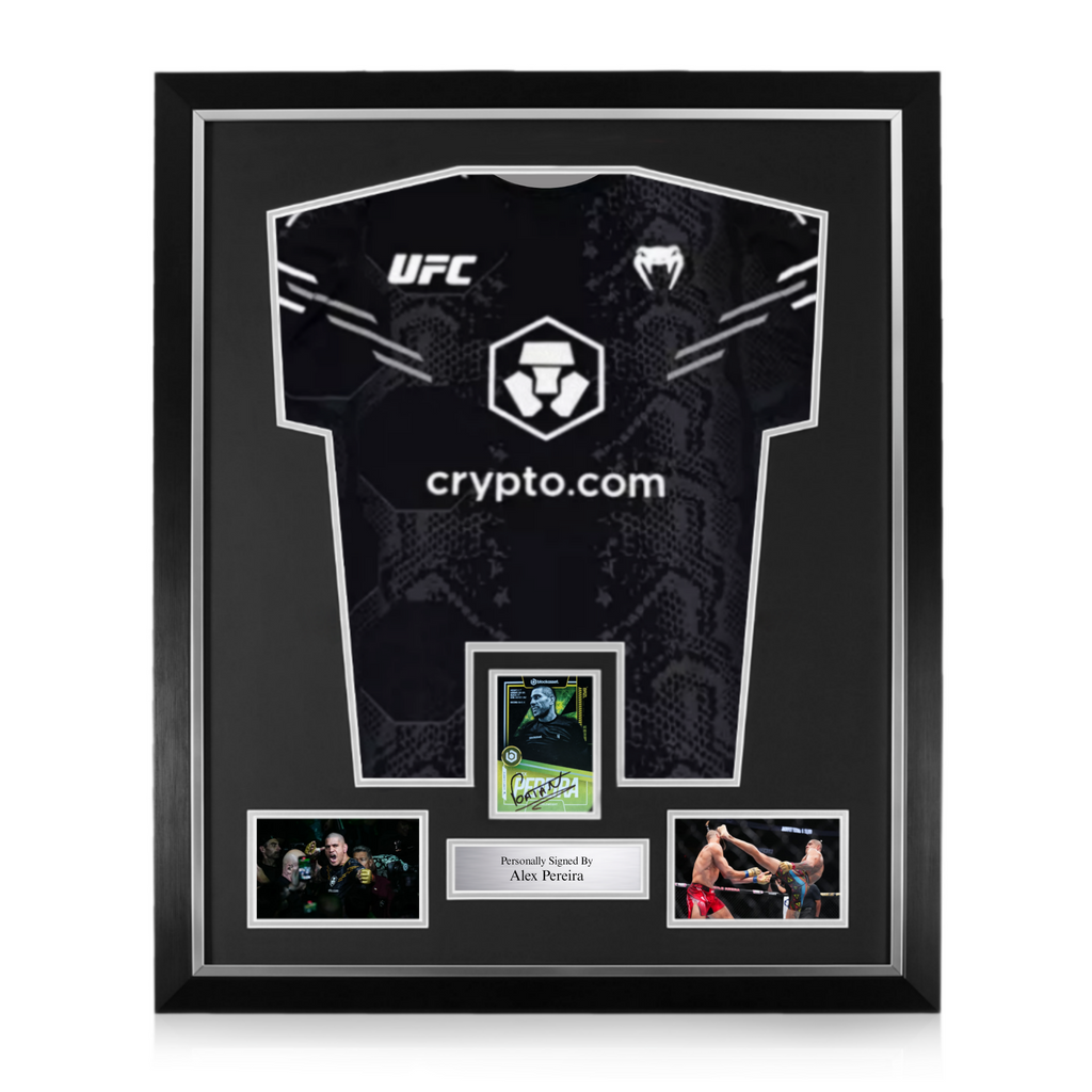 Alex Pereira Signed Framed Display w/ UFC Black and Silver Shirt