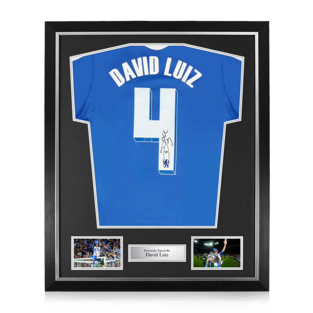 David Luiz Signed Framed Chelsea 2012 Home Shirt