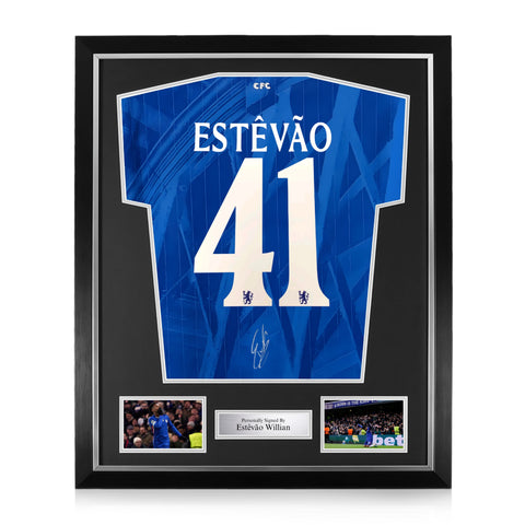 Estêvão Willian Signed Framed Chelsea F.C. 2025/26 Home Shirt