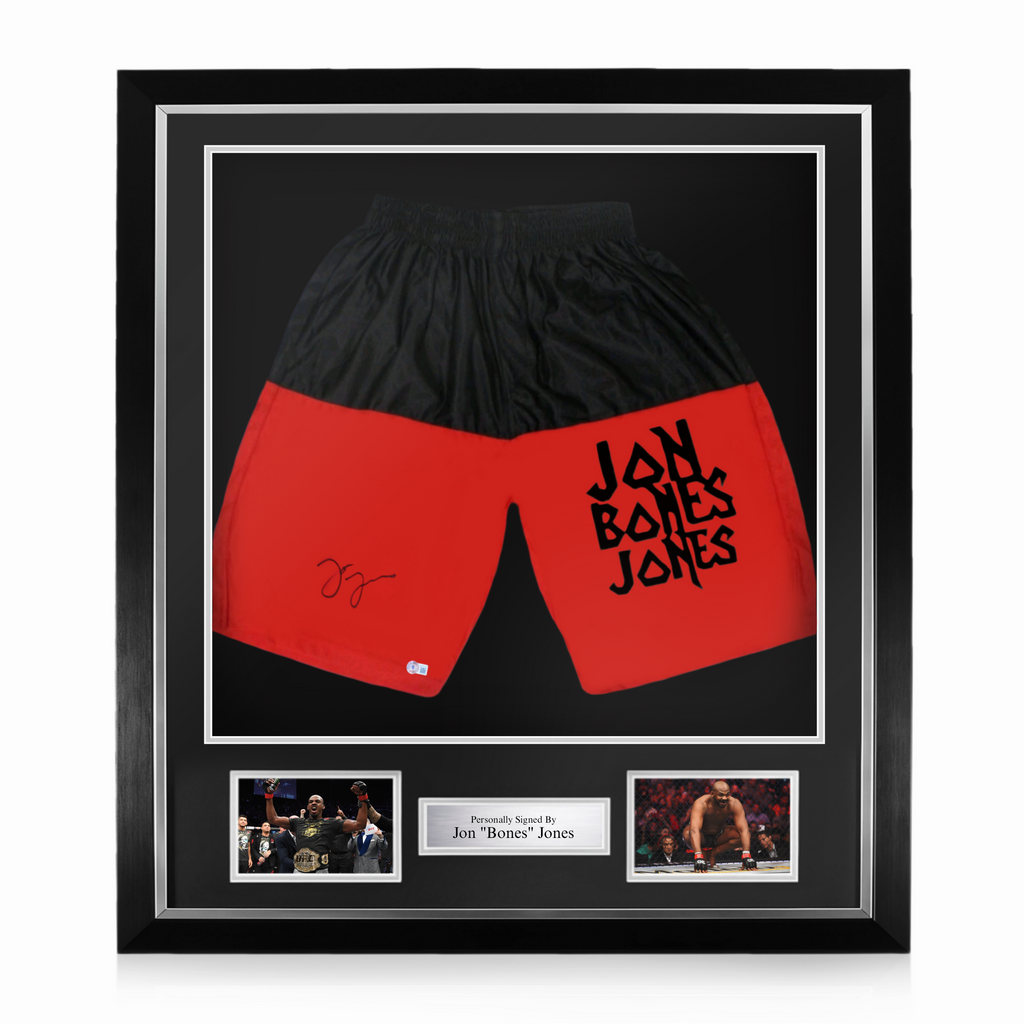 Jon Jones Signed Framed UFC Bones Shorts w/ Beckett Authentication