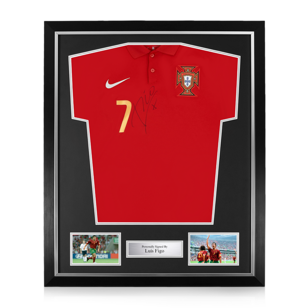 Luís Figo Signed Framed Portugal 7 Home Shirt