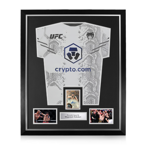 Magomed Ankalaev Signed Framed Display w/ UFC White and Blue Shirt