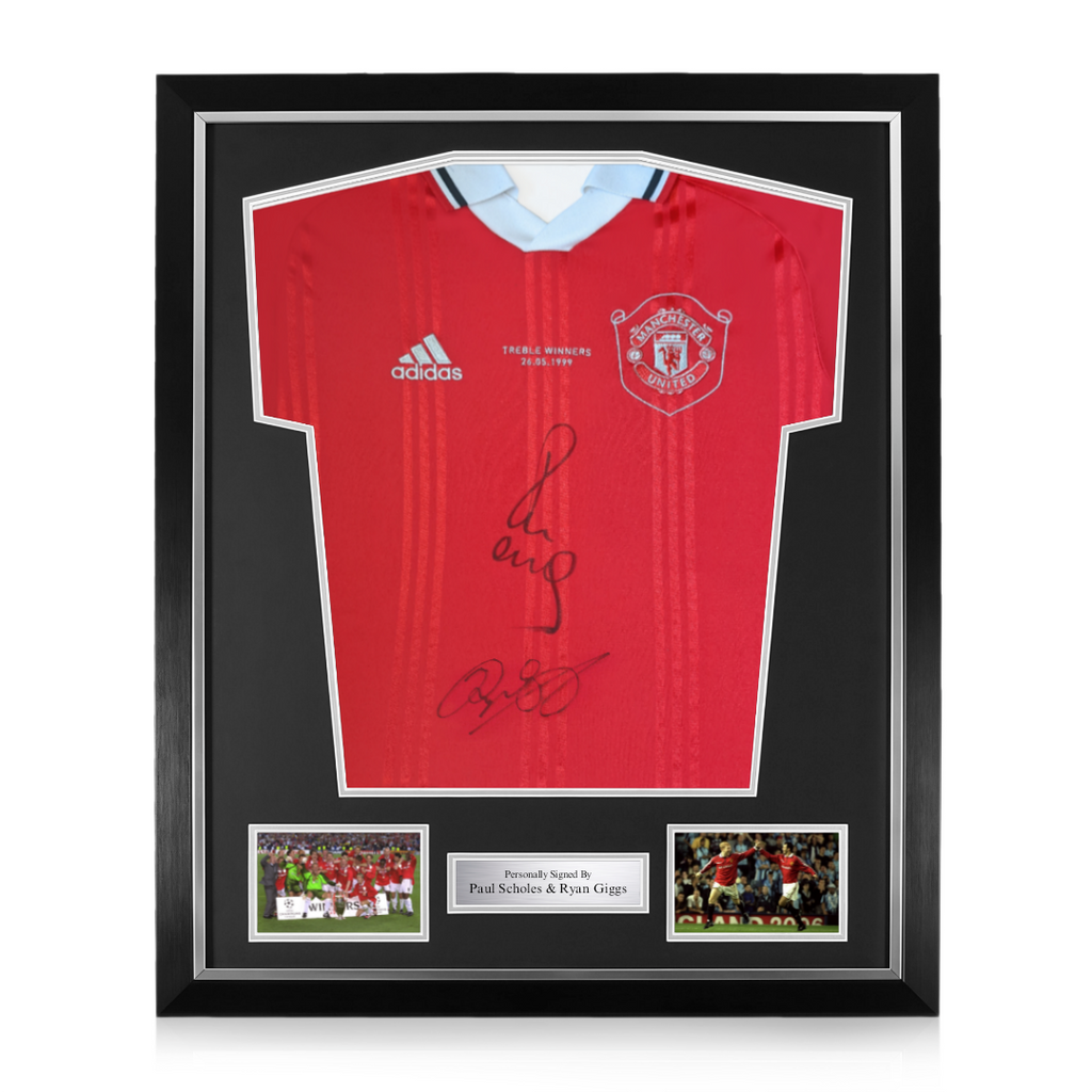 Paul Scholes and Ryan Giggs Signed Framed Manchester United Treble Special Edition Home Shirt