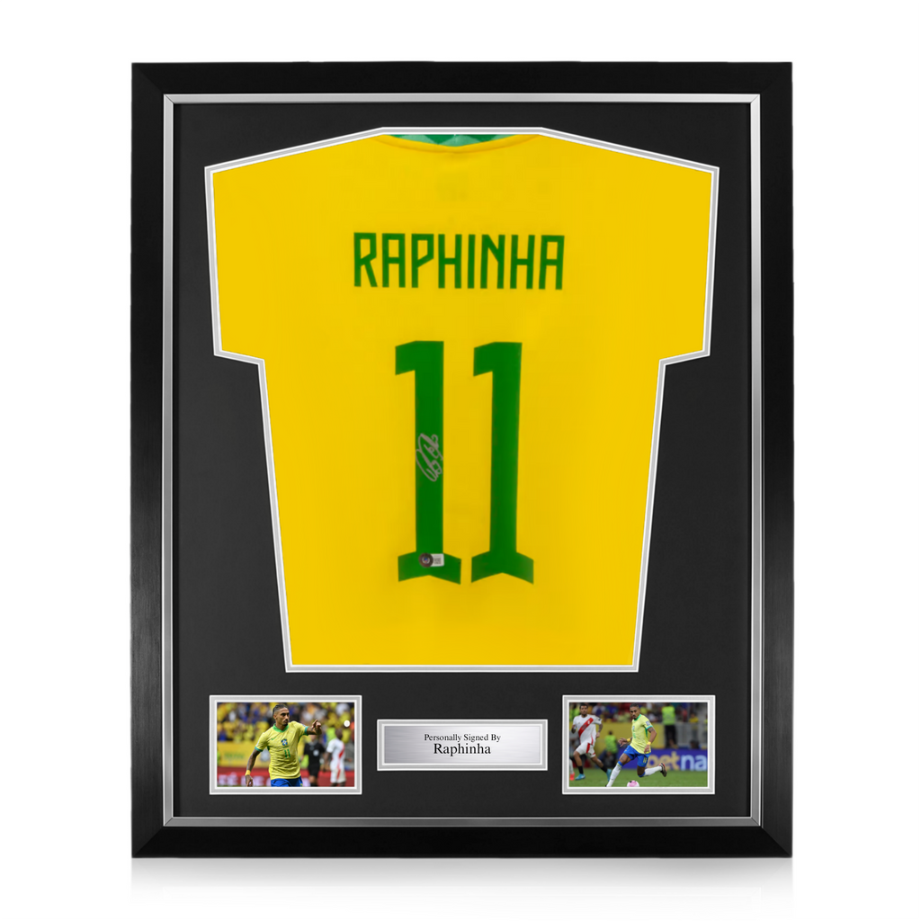 Raphinha Signed Framed Brazil Home Shirt w/ BAS Beckett Authentication