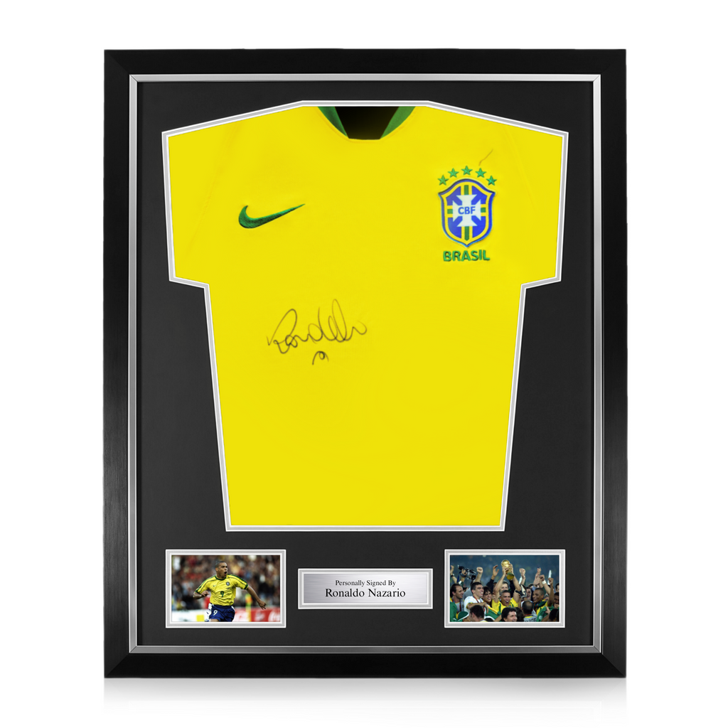 Ronaldo Nazario Signed Framed Brazil Home Shirt